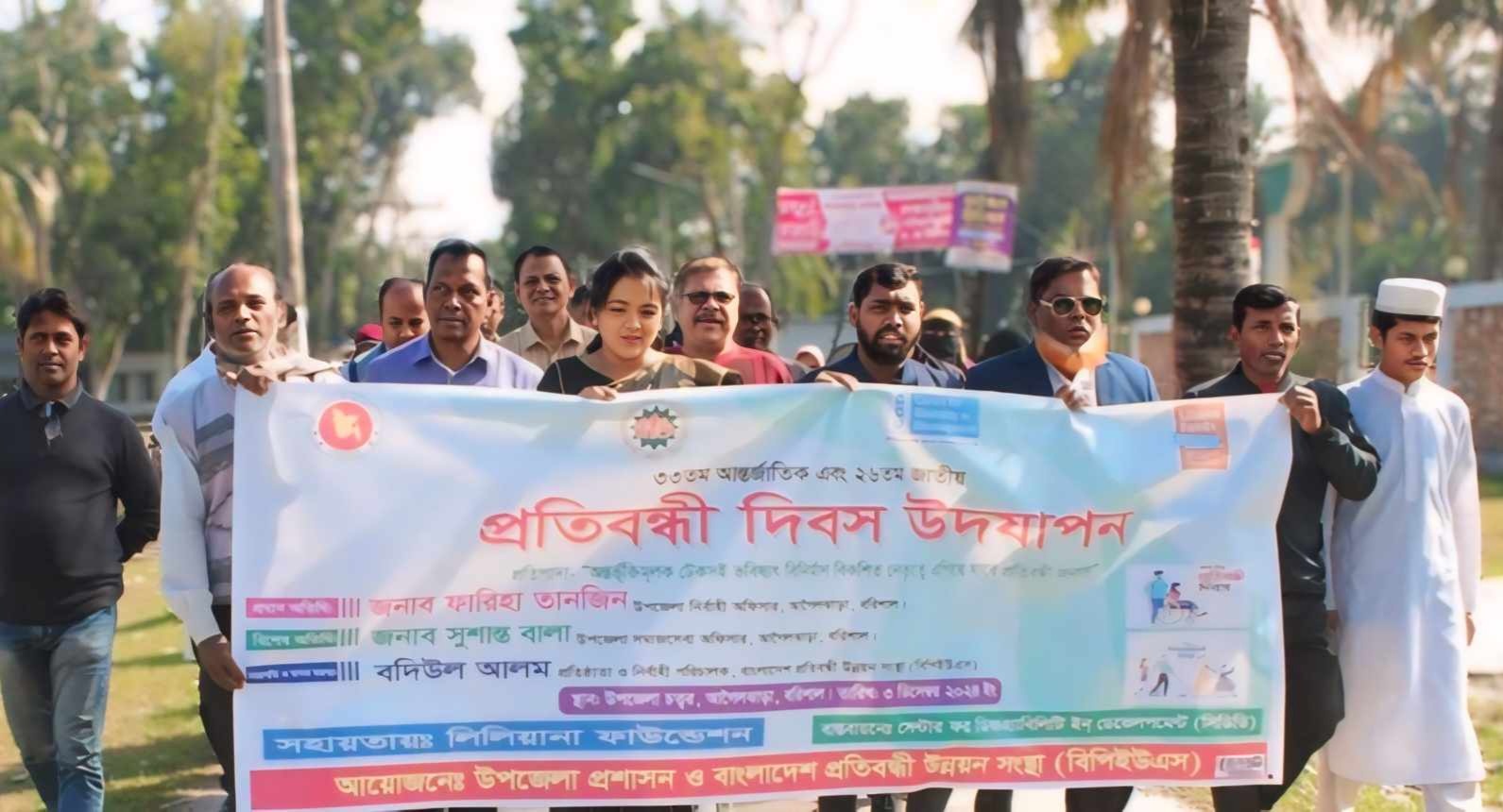 বরিশালের আগৈলঝাড়ায় আন্তর্জাতিক প্রতিবন্ধী এবং জাতীয় প্রতিবন্ধী দিবস উদ্যাপন উপলক্ষ্যে র্যালী ও আলোচনা সভা এবং প্রতিবন্ধীদের মাঝে হুইল চেয়ার বিতরণ করা হয়েছে। মঙ্গলবার সকালে বাংলাদেশ প্রতিবন্ধী উন্নয়ন সংস্থার উদ্যোগে উপজেলা পরিষদ চত্বর থেকে র্যালী বের হয়ে বিভিন্ন সড়ক প্রদক্ষিণ শেষে চত্বরে গিয়ে শেষ হয়। পরে বাংলাদেশ প্রতিবন্ধী উন্নয়ন সংস্থার পরিচালক বদিউল আলম বাবুলের সভাপতিত্বে আলোচনা সভায় বক্তব্য রাখেন, উপজেলা নির্বাহী কর্মকর্তা ফারিহা তানজিন, উপজেলা সমাজসেবা কর্মকর্তা সুশান্ত বালা, যুব উন্নয়ন কর্মকর্তা খলিলুর রহমান, উপজেলা বিএনপি’র সাবেক সাধারণ সম্পাদক আবুল হোসেন লাণ্টু, বিএনপি’র যুগ্ম—আহ্বায়ক শাহ মো. বক্তিয়ার, প্রেস ক্লাব আহ্বায়ক সরদার হারুন রানাসহ প্রমুখ।এছাড়াও বেসরকারি এনজিও কারিতাসের আয়োজনে উপজেলার পতিহার গ্রামের বিডিএস হলরুমে জাতীয় প্রতিবন্ধী দিবস উদ্বোধন উপলক্ষ্যে আলোচনা সভা ও প্রতিবন্ধীদের মাঝে পুরস্কার বিতরণ করা হয়।