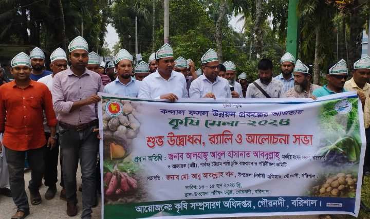স্টাফ রিপোর্টার,এ,এস,মামুন।"অপ্রতিরোধ্য দেশের অগ্রযাত্রা কৃষি প্রযুক্তি এনে দেবে নতুন যাত্রা "এই প্রতিপাদ্যকে ধারন করে বরিশালের গৌরনদীতে কন্দাল ফসল উন্নয়ন প্রকল্পের আওতায় কৃষি মেলা ২০২৪ এর উদ্বোধন অনুষ্ঠিত হয়েছে।
