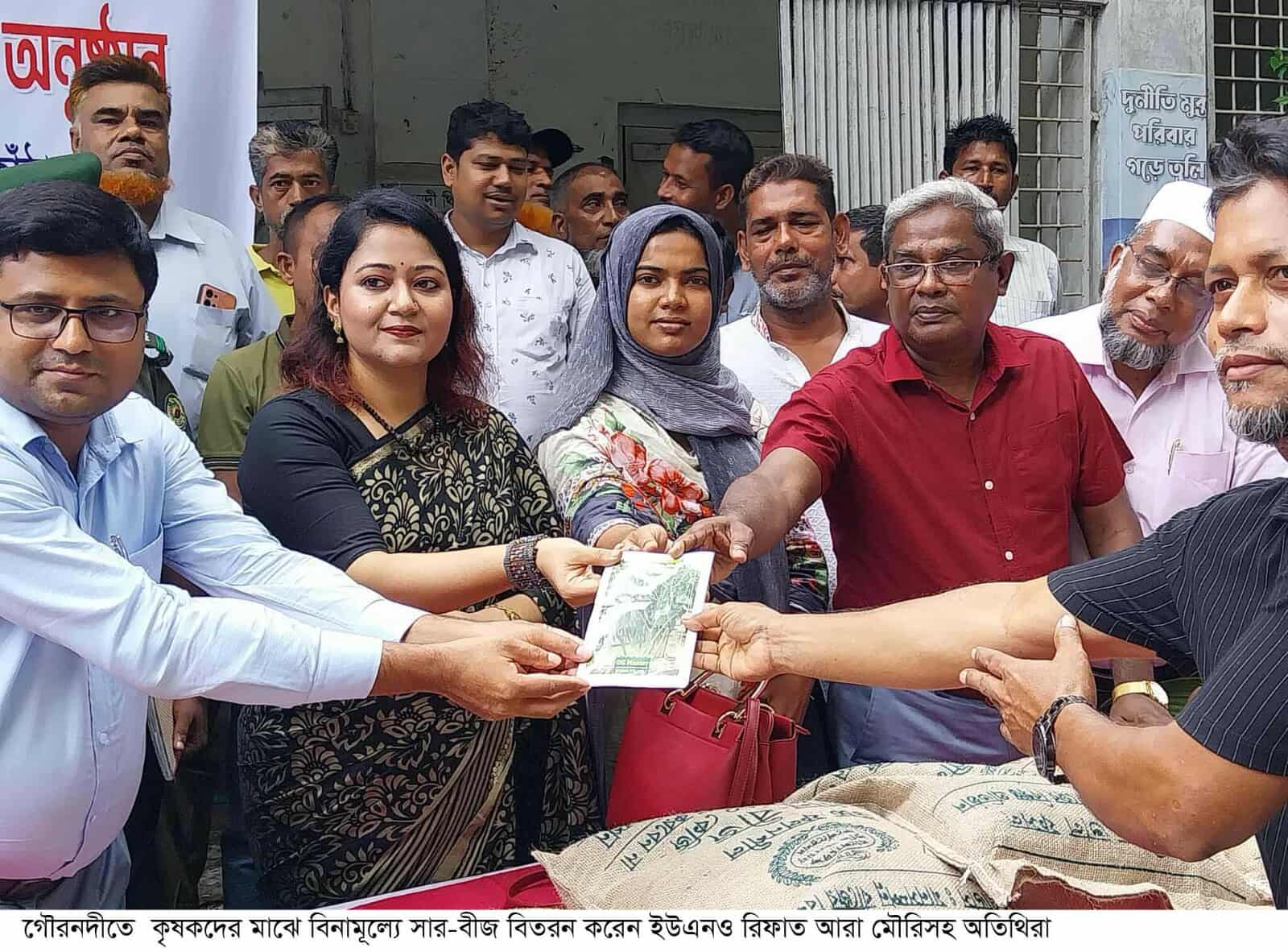 স্টাফ রিপোর্টারঃ- বরিশালের গৌরনদী উপজেলা কৃষি উন্নয়ন অধিদপ্তরের উদ্যোগে ২০২৪/২০২৫ অর্থ বছরে খরিপ/ ২০২৪-২০২৫ মৌসুমের প্রনোদোনা কর্মসূচীর আওতায় ক্ষুদ্র ও প্রান্তিক কৃষকদের মাঝে বিনামূল্যে বীজ, কীটনাশক-সার ও চারা বিতরন উপলক্ষে এক কৃষক সমাবেশ অনুষ্ঠানের আয়োজন করা হয়।