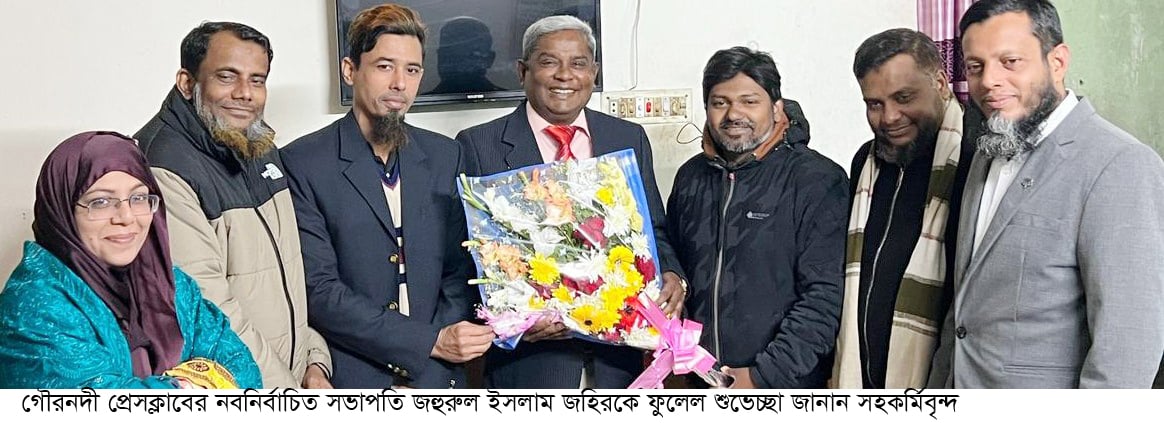 গৌরনদী প্রেসক্লাবের নবনির্বাচিত সভাপতি সিনিয়র সাংবাদিক জহুরুল ইসলাম জহিরকে ফুলেল শুভেচ্ছা জানিয়েছেন প্রেসক্লাবের নবিন সদস্যরা।