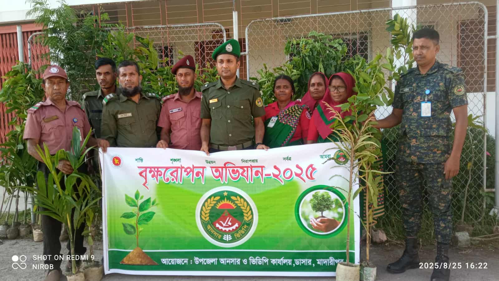 এরই ধারাবাহিকতায় মাদারীপুর জেলার ডাসার উপজেলায় ৫০ টি ফলজ, বনজ ও ভেষজ গাছের চারা রোপন কর্মসূচী পরিচালনা করা হয়। কর্মসূচির আওতায় ফলজ, বনজ ও ঔষধি গাছের চারা রোপণ করা প্রতিটি রেঞ্জ, ব্যাটালিয়ন, উপজেলা ও ইউনিয়ন পর্যায়ে আনসার-ভিডিপি সদস্যরা স্থানীয় জনগণকে সাথে নিয়ে এই কর্মসূচিকে একটি সামাজিক আন্দোলনে রূপ দিতে নিরলস ভাবে কাজ করে যাচ্ছে।