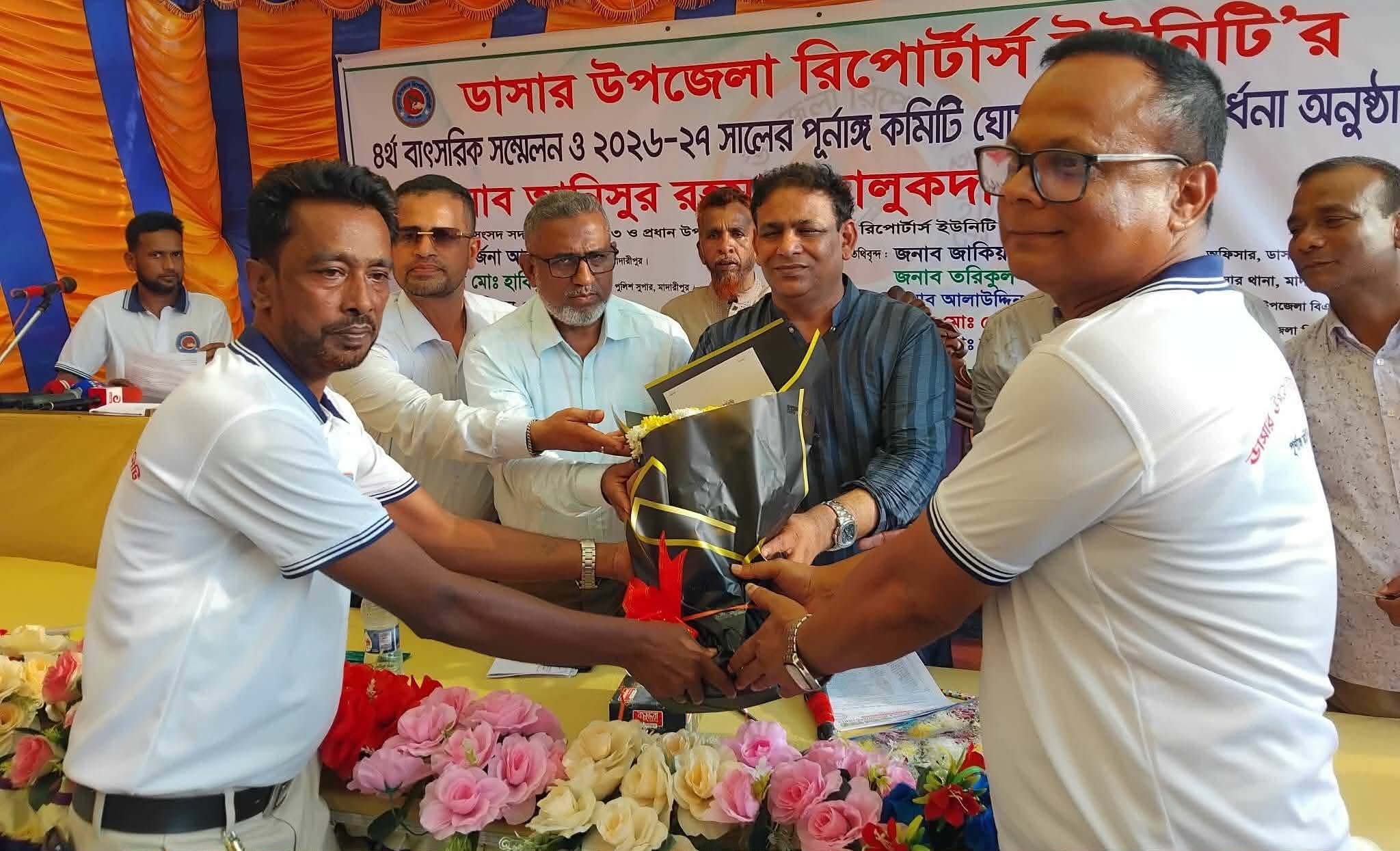 মাদারীপুর ডাসার উপজেলার পেশাজীবি সাংবাদিকদের সংঘঠন ডাসার উপজেলা রিপোর্টার্স ইউনিটির বাৎসরিক সম্মেলনে ২১ সদস্যবিশিষ্ট কার্যনির্বাহী কমিটি ঘোষণা করা হয়েছে।