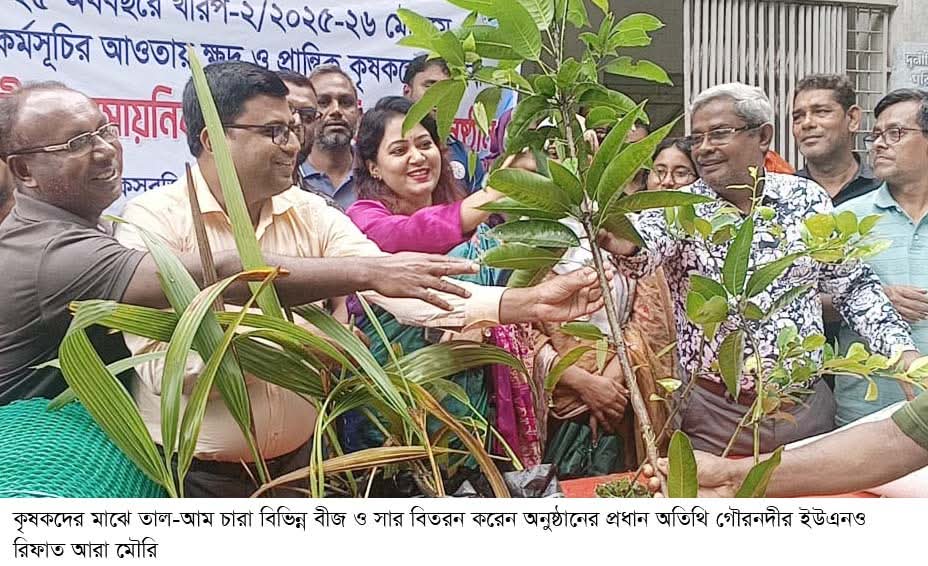 স্টাফ রিপোর্টারঃ-বরিশালের গৌরনদী উপজেলা কৃষি উন্নয়ন অধিদপ্তরের উদ্যোগে ২০২৪/২০২৫ অর্থ বছরে খরিপ/ ২০২৪-২০২৫ মৌসুমের প্রনোদোনা কর্মসূচীর আওতায় ক্ষুদ্র ও প্রান্তিক কৃষকদের মাঝে বিনামূল্যে তালচারা, আমচারা, সবজী বীজ, কীটনাশক-সার বিতরন উপলক্ষে এক কৃষক সমাবেশ অনুষ্ঠিত হয়।