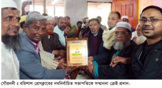ঐতিহ্যবাহী বরিশাল প্রেসক্লাবের নবনির্বাচিত সভাপতি মুহাম্মদ আমিনুল ইসলাম খসরু ও অন্যান্য সদস্যদের সংবর্ধনা দেওয়া হয়েছে।