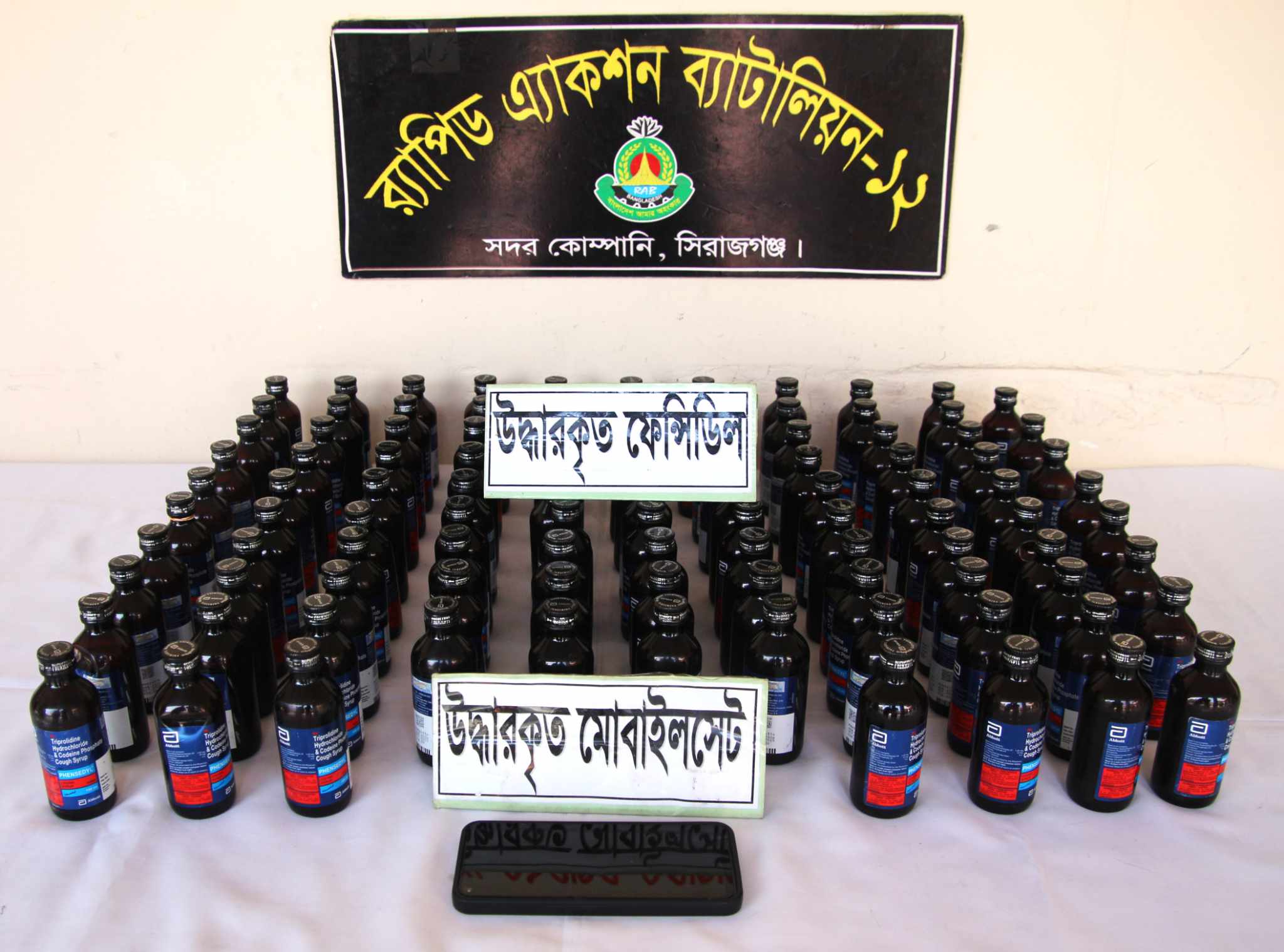 সিরাজগঞ্জ র্যাব-১২,এর অভিযান চালিয়ে অভিনব কায়দায় ট্রাভেল ব্যাগে মাদক পরিবহন কালে ১০৪ বোতল ফেন্সিডিলসহ ০১ জন মাদক ব্যবসায়ী গ্রেফতার।