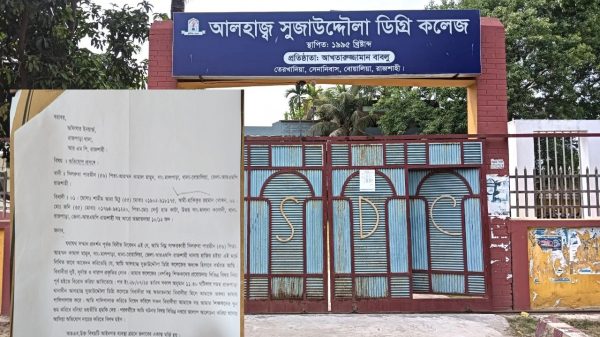 মোঃ সোহেল রানা রাজশাহী বিভাগীয় ব্যুরো প্রধানঃ- নানান নাটকিয়তার পরেও কলেজের ভারপ্রাপ্ত অধ্যক্ষের দায়িত্ব না পেয়ে অবশেষে থানায় মিথ্যা খুন ও গুমের অভিযোগ দায়ের করেন আলহাজ্ব সুজাউদ্দৌলা কলেজে প্রভাষক দিলরুবা