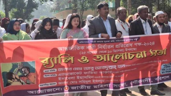 স্টাফ রিপোটার,এ,এস,মামুন “নারী কণ্যার সুরক্ষা করি সহিংসতার মুক্ত বিশ্ব গড়ি” এই প্রতিপাদ্য কে বুকে ধারন করে আন্তর্জাতিক নারী নির্যাতন প্রতিরোধ পক্ষ২০২৪ উপলক্ষে বরিশালের গৌরনদীতে র্যালী ও আলোচনা সভা অনুষ্ঠিত