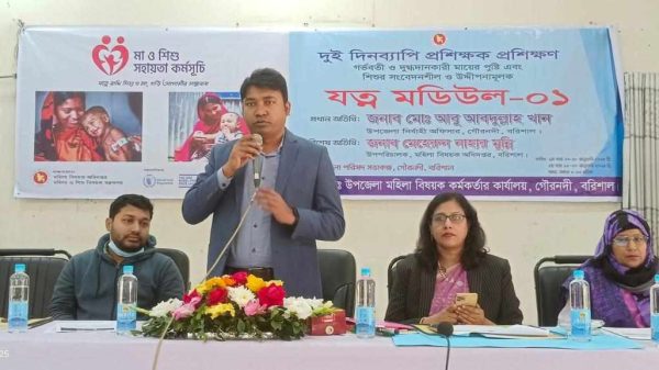 স্টাফ রিপোর্টার, এ,এস,মামুন বরিশালের গৌরনদী উপজেলায় মা ও শিশু সহায়তা কর্মসূচির দুই দিনব্যাপী রিসোর্সপুলের এসবিসিসি প্রশিক্ষক প্রশিক্ষণ কর্মশালার শুভ উদ্বোধন করা হয়েছে। মঙ্গলবার সকালে গৌরনদী উপজেলা মহিলা বিষয়ক কর্মকর্তার