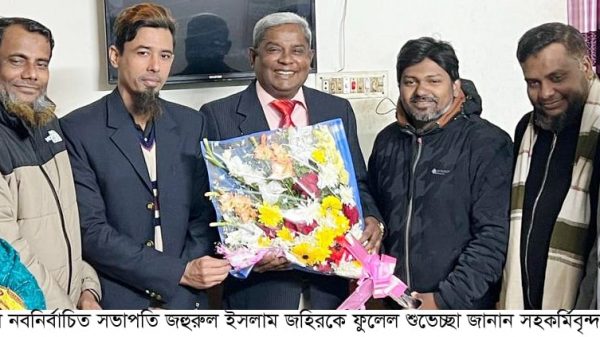 গৌরনদী প্রেসক্লাবের নবনির্বাচিত সভাপতি জহুরুল ইসলাম জহিরকে ফুলেল শুভেচ্ছা।