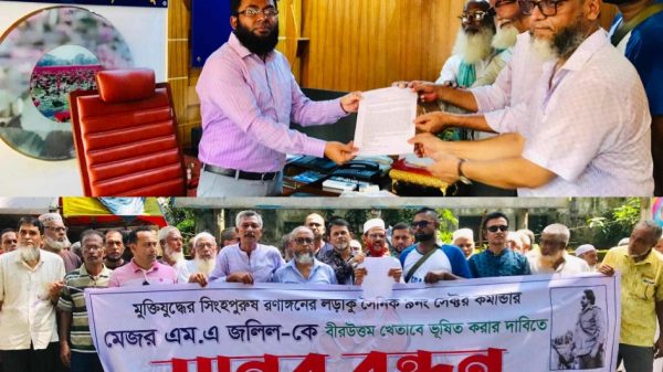 উজিরপুরে মেজর এম.এ জলিল কে বীরউত্তম খেতাবে ভূষিত করার দাবিতে মানববন্ধন ও স্মারকলিপি প্রদান।