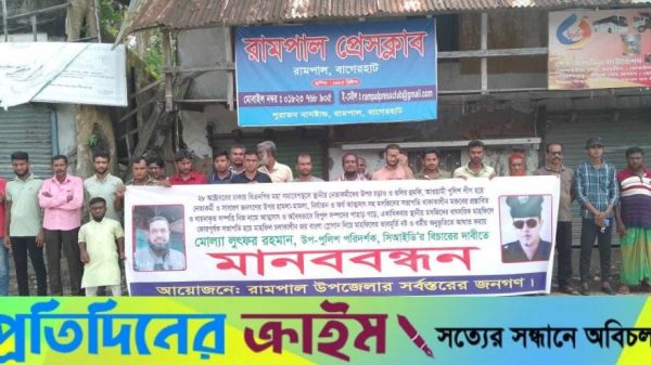 রামপালে পুলিশ কর্মকর্তার বিচারের দাবিতে মানববন্ধন