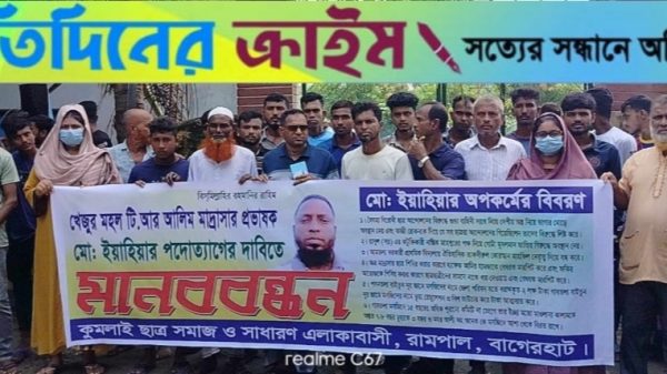 রামপালে মাদ্রাসা প্রভাষক ইয়াহিয়ার পদত্যাগের দাবিতে মানববন্ধন