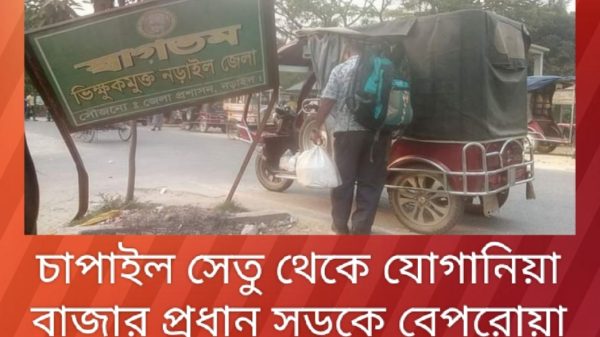 চাপাইল সেতু থেকে যোগানিয়া বাজার প্রধান সড়কে বেপরোয়া গাড়ী চলাচল।