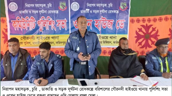 গৌরনদী উপজেলা প্রতিনিধিঃ-নিরাপদ মহাসড়ক, চুরি, ডাকাতি ও সড়ক দূর্ঘটনা রোধকল্পে বরিশালের গৌরনদী হাইওয়ে পুলিশিং সভা ও ওপেন হাউজ ডে ২৫ জানুয়ারী বৃহস্পতিবার সকালে অনুষ্ঠিত হয়েছে। মাদারীপুর রিজিয়ন, ফরিদপুর গৌরনদী হাইওয়ে